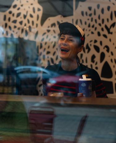 „Vorsicht, heiß! Und sagt liebe Grüße zu Hause!“ – dass Vivi bereits in der Nachbarschaft angekommen ist, merken wir sofort, als wir uns hinter den beiden Schulkindern an der Theke einreihen, die sich eine Stärkung für den Heimweg holen und gebührend verabschiedet werden. Kein Wunder, denn Vivi ist in Sachsenhausen zu Hause und wohnt mit ihrer Familie hier. Sie kommt zu Fuß und auch ihre Tochter kommt nach der Schule vorbei – die Location auf der Schweizer Straße ist also für sie ein Glücksfall. „Ich hätte mir das niemals träumen lassen. Alles hier ist sehr vertraut, man kennt sich!“ Und grüßt sich sehr nett, wie wir schnell feststellen. „Selbst wenn ich ins Nordend gehe, ist das schon wie Urlaub, dort kenne ich nichts“, lacht Vivi. An Frankfurt generell mag sie das Bunte und natürlich den Fluss – denn das Meer fehlt ihr schon schmerzlich.